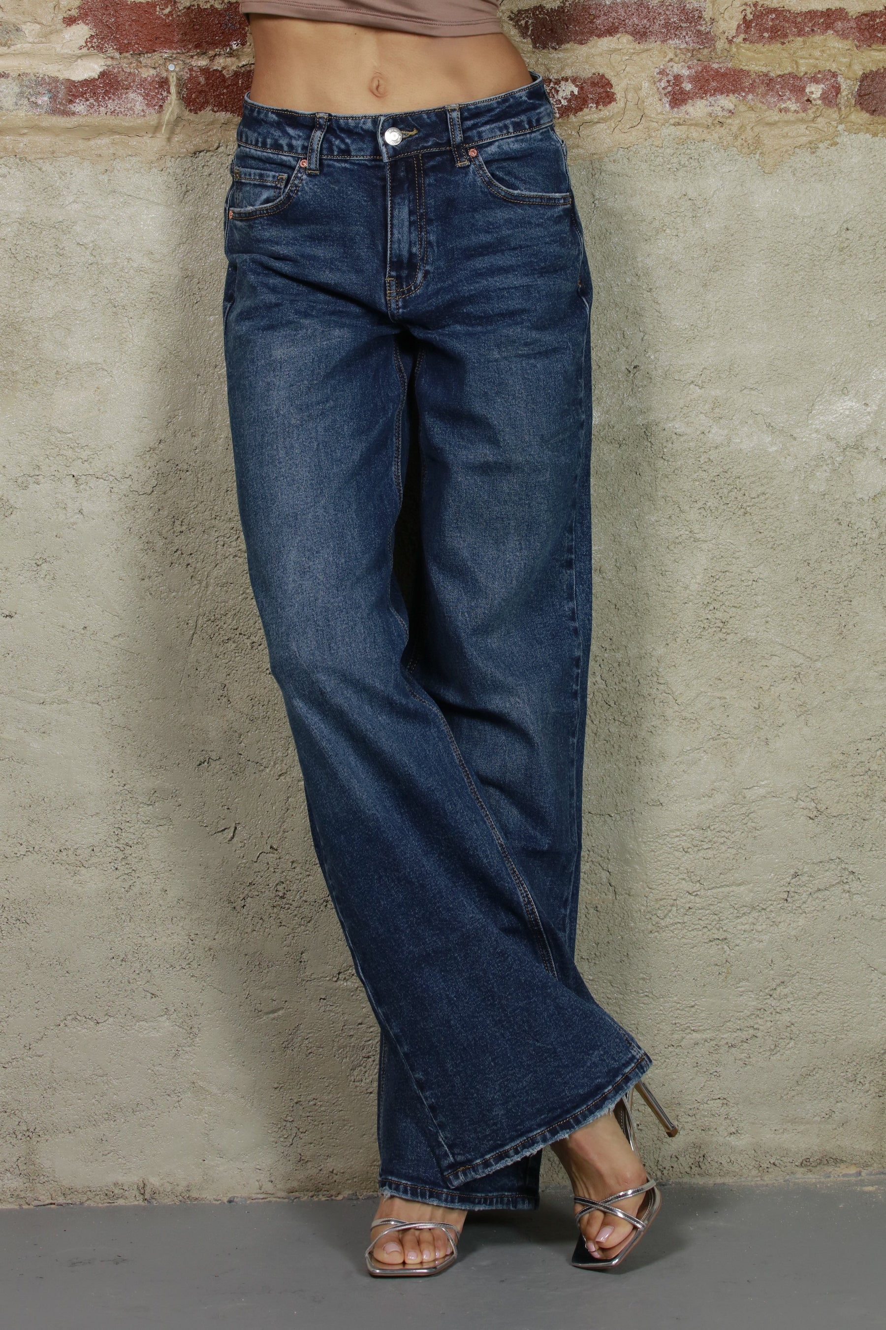 Stretchy Middle waist Mom-fit Belt loops Five pockets Zip fly