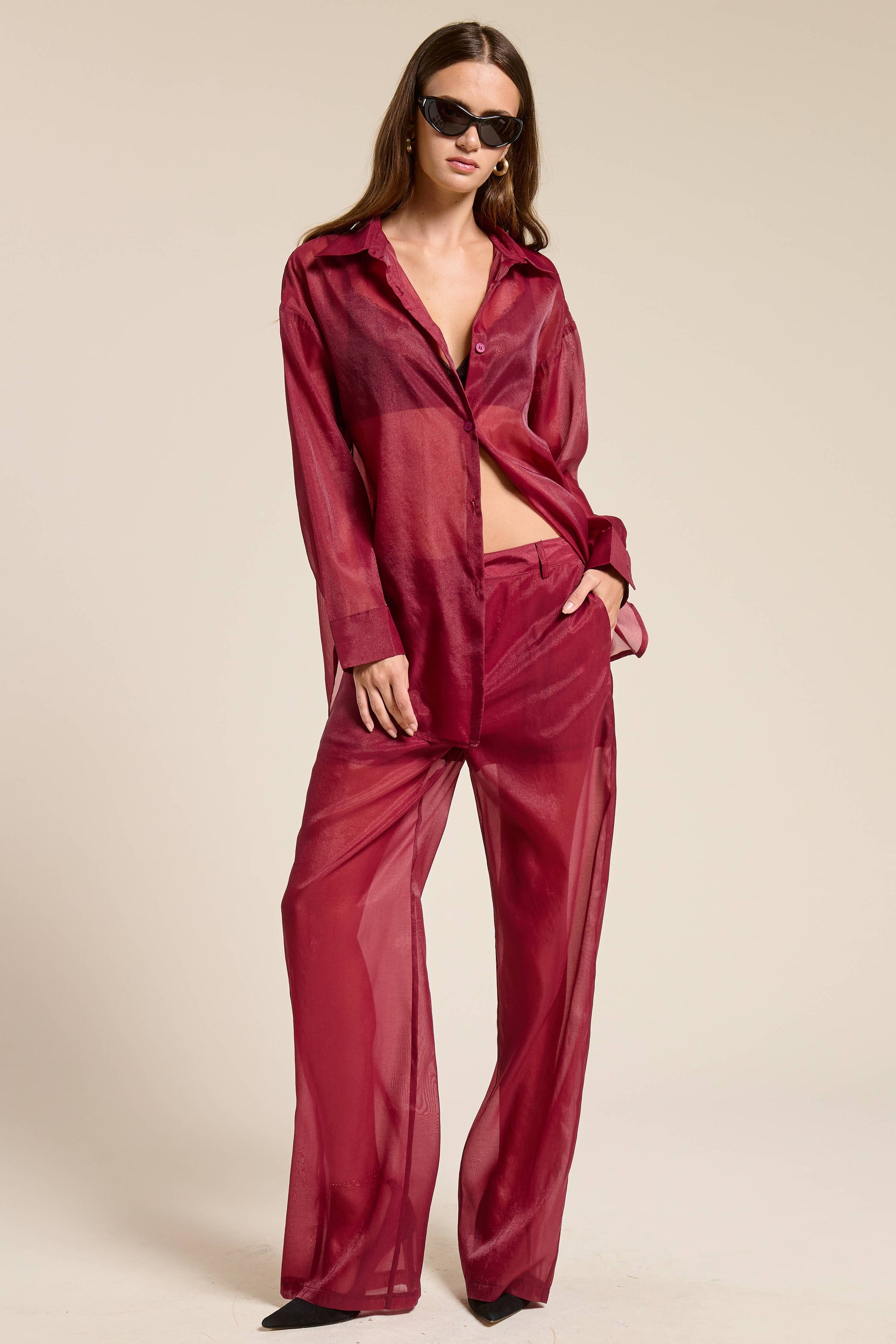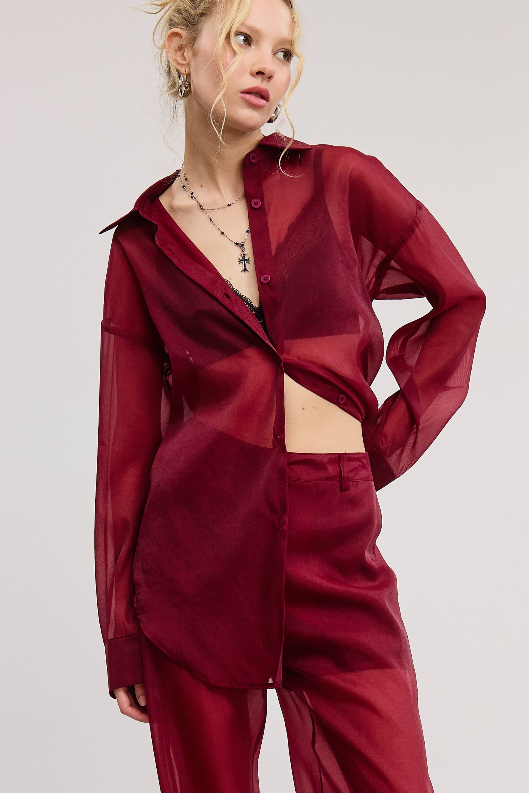 Selene Sheer Organza Collared Blouse - S / Burgundy - shirts
