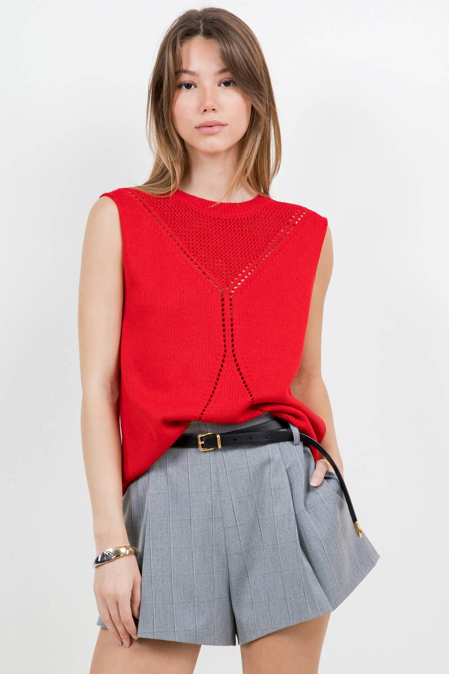 JUST RED KNITTED SWEATER VEST