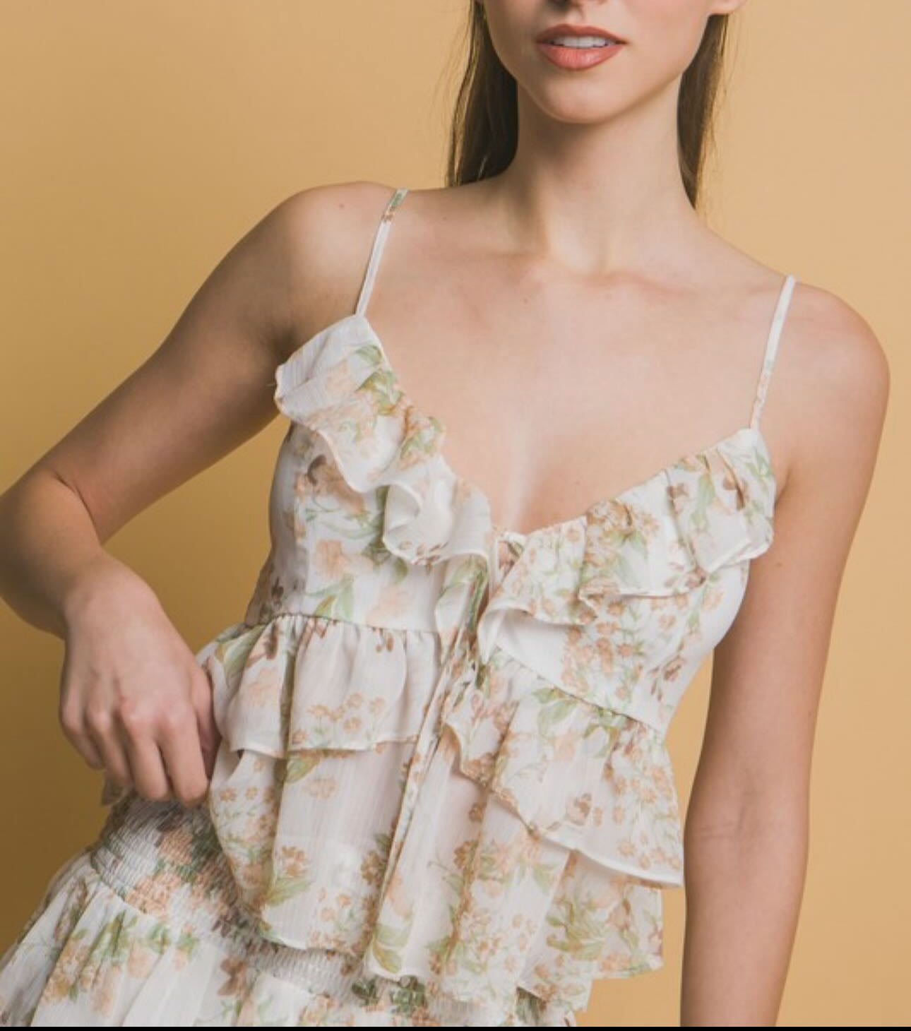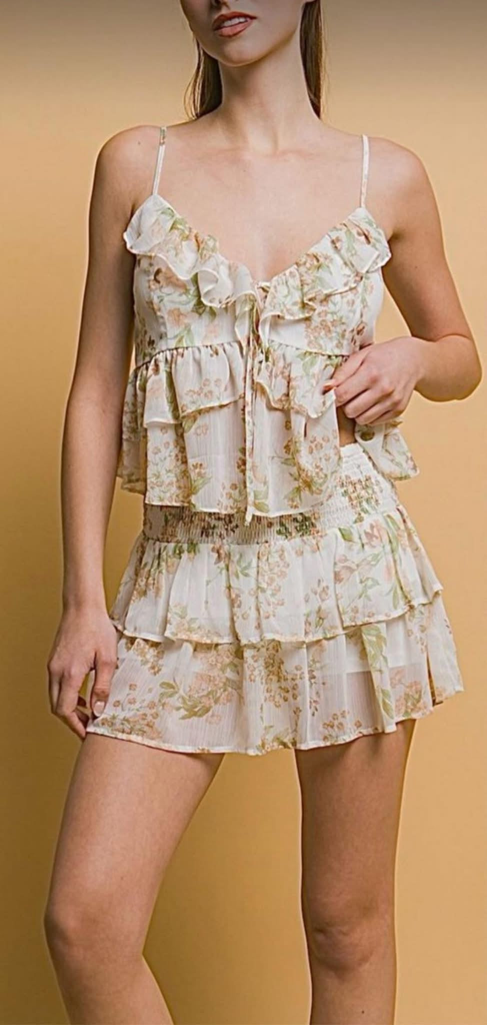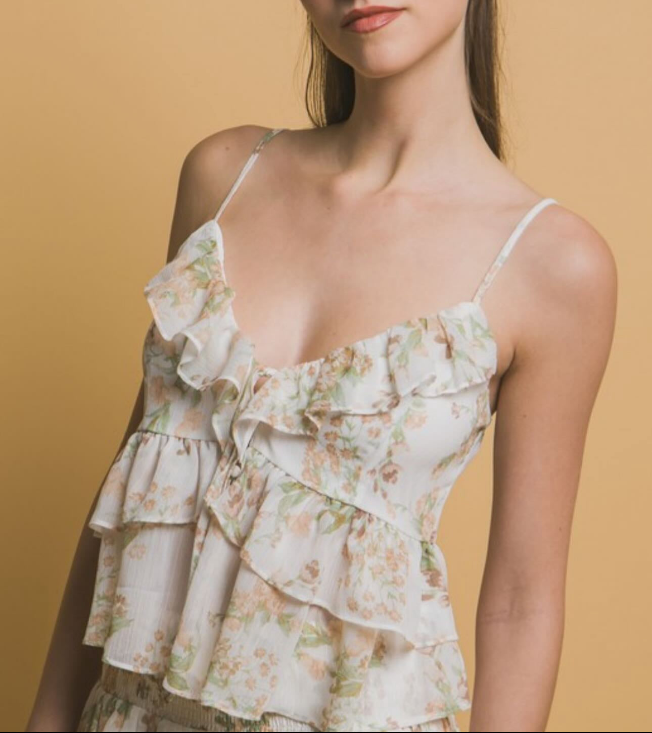 The lightweight polyester fabric showcases a beautiful floral print, perfect for spring and summer occasions. The fully lined construction ensures optimal coverage while maintaining an ethereal flow through multiple tiers. Ideal for garden parties or casual outings. Color may vary slightly due to monitor resolution.